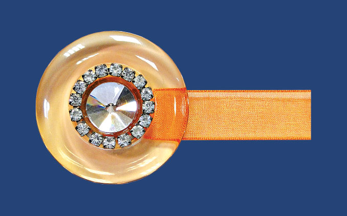 Μαγνήτης Στρογγυλός Κρύσταλλο και Στρας με Κορδέλα – Πορτοκαλί